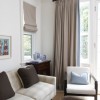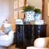 You can see the french doors are actually on both sides of this room, and yet it doesn’t look as though it lacks privacy. I like the central fireplace flanked by bookshelves. But the beauty of this room is the ceiling line and those upper windows facing the trees. Can you imagine this same room but with a flat ceiling? Not remotely as nice.
