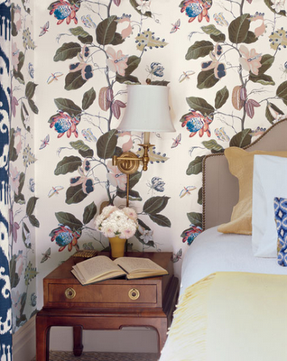 In the bedrooms my clients inherited these slightly strange and dated upholstered panels as feature walls, which were recovered with wallpaper to tie in with the other decor choices. Here’s an idea of the bedrooms before: