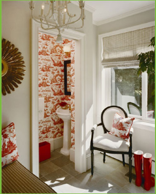 The following isn’t the world’s greatest photo but I also wanted to show you a pic of the progress in my clients’ bathroom renovations. I love the wall of black and white Moroccan - inspired tiles in the shower!