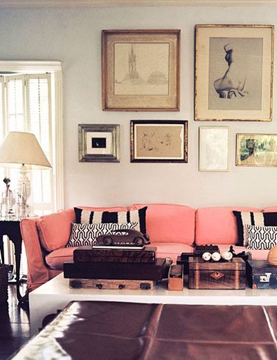 After a lot of umming and ahhing I decided on a hot pink fabric with stud trim for the re-upholstery of a French-style sofa. I’m really liking pink at the moment, paired with black and white or with other colours. The pink and yellow fabrics in one of the rooms above are just gorgeous together. And speaking of re-upholstery, I’m also really liking more than one fabric on the one piece at the moment. Like with the chairs above, using a solid on the front and a coordinating pattern on the backs for a subtle little surprise and added interest.