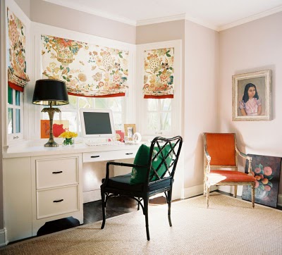 But back to my office, I picked up this hot pink fabric to make a blind for the little window. It has a backing which will keep that sun out in summer.