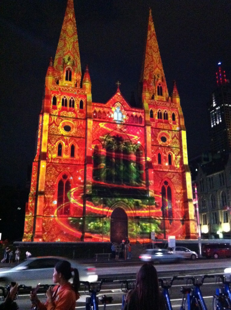 So, what have I been up to since I last posted? We had a lovely Christmas day at my parents’ house with my side of the family, and then Christmas dinner at my in-laws (I love having them all to our place but our house is too small for everyone to be comfortable, and actually it worked out great to come home to a clean house with no cleaning to do on Christmas). On Christmas night we walked around the city and saw the beautiful light display on the facade of St Paul’s Cathedral: