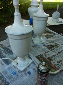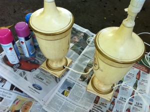 I have been busy this long weekend painting lamp bases that I’ve had around the house for ages waiting for me to do something with them. Remember the lamps from this post? Well I went to the hardware shop looking for some good spray paint in either kelly green or a nice shade of purple. I have to say the options were rather limited! I have since found that you can buy any colour in the rainbow from spray-paint suppliers online, but I’m a right-now kind of girl so I went ahead about bought the least offensive colour that I could get my hands on immediately - actually I bought a few options: