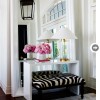 The client wasn’t a huge fan of the existing floor tiles in this room but we couldn’t replace them, so most of them were covered with a big sisal rug, with another blue and white striped rug layered over the top to define the sitting area.