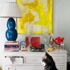Black and orange with an accent of green. The drawers look similar to the ones in the wardrobe above. Who wouldn’t want a dressing room like this one?
