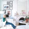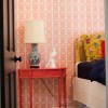 Darker textured wallpaper can have a similar effect (above). I think the white sofa and black side tables look so much better against the darker seagrass wallpaper than they would against plain white. It also helps to tie the cushions and the artwork together, creating a sort of textured, natural theme.