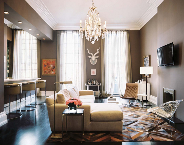 This moody dark brown is perfect for an elegant formal living room (above).