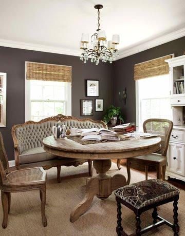 I’ve had this dining room saved for quite awhile- the style might be a little too ‘country’ for my tastes, but I just love the wall colour paired with linen upholstery and the timbers in this room. And I love round dining tables - so much friendlier than rectangular ones!