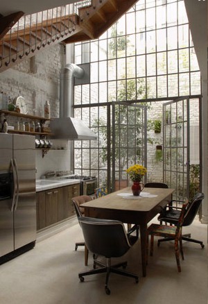 This is possibly a little rustic for me (above), but I do love the privacy of looking onto an old brick wall (am I the only one who likes this sort of view in the city? Much better than being overlooked). Also the wall of glass and the staircase leading upwards is beautiful.