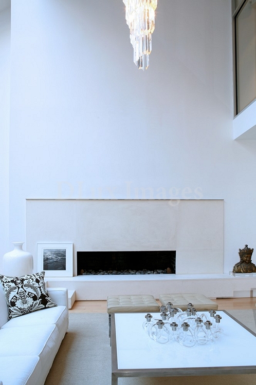I am leaning more and more towards a modern style, like the clean lines of this fireplace (above) and the smooth, high white walls. I posted about the rest of this house awhile ago, here.