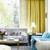 A yellow and grey living room