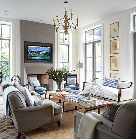 Living room in greys and blues