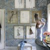 The twin bedroom above and below made me stop because it’s basically the same scheme I had been planning for one of my boy’s bedrooms in our next house- I’d even bought the same fabrics! The bedhead fabric is one I had used in a recent job and loved it so much I needed to use it at home too. I love, love the dark grey/blue walls. Notice how in the magazine photo above they placed a mirror in between the beds to reflect the green greyhound painting opposite, but it’s absent from the room normally (below).