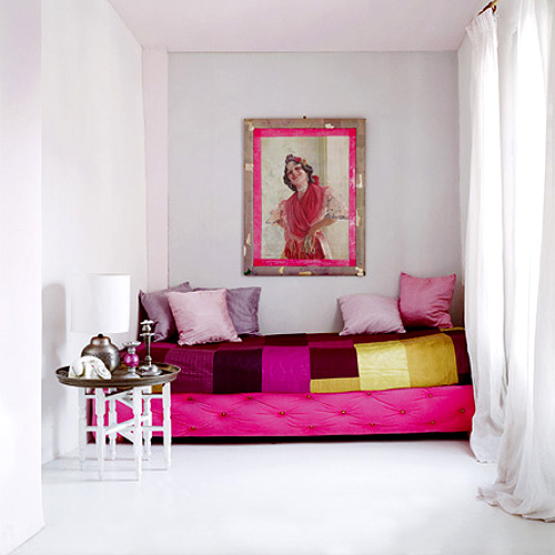 Again, the pale palette, touches of french style combined with plain white walls and modern silver vase really appeals.