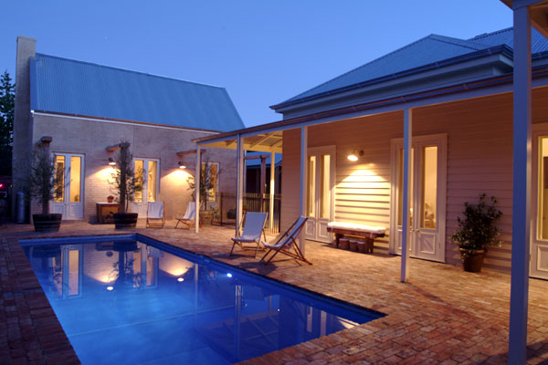 But it’s not all rustic and country, see? I have always dreamed of having an internal courtyard with a pool, with my house or a high wall wrapping around the boundaries. I suppose you don’t really need this for privacy in the country, but the effect is still beautiful. The french doors instead of windows make it for me, and the rough-rendered walls and potted olive trees by the pool give this house the feel of a villa in Italy or the French countryside. The pool area reminds me a lot of the house I featured in this post.