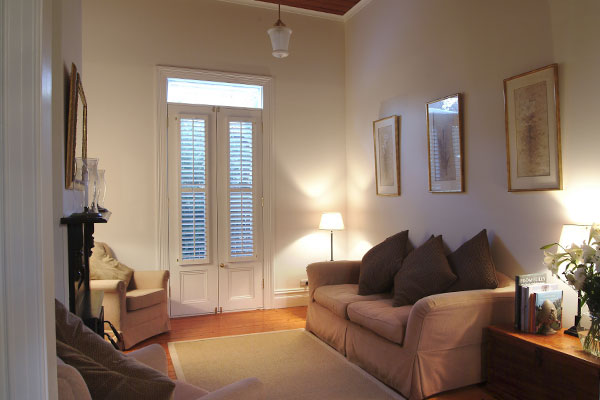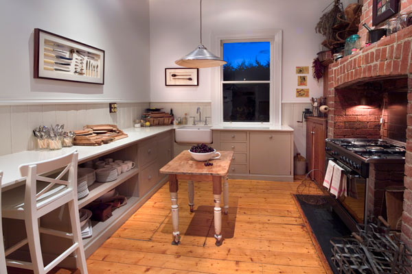 It’s old-fashioned, I know, but separate kitchens really appeal to me. New or renovated houses in Australia hardly ever have kitchens that are separate from the living area. I understand why open-plan kitchens/living rooms are more practical for families, but separate kitchens are so much more cosy. I love that they have kept the original brick fireplace and used it as a surround for that wonderful freestanding oven/stove.