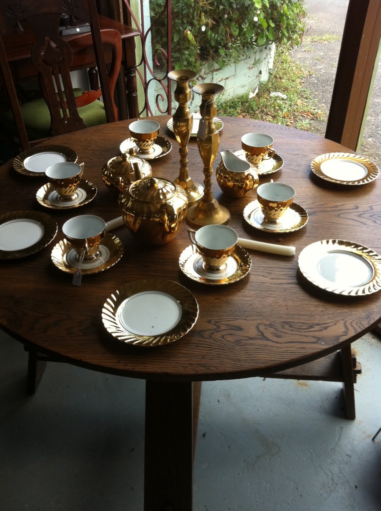 This gold teaset was $120. I liked the round oak table, too.