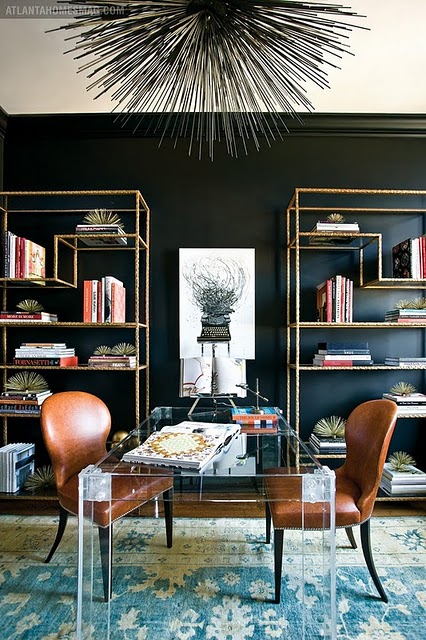 Isn’t this office amazing? I saw it over at one of my fave blogs, shelter. I love everything about it, in particular the way those gold/brass metal shelves look against the dark walls. And the geometric shape! Here’s another favouite from my ‘files’.
