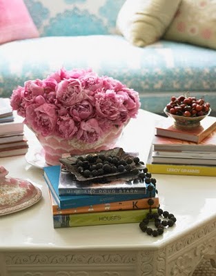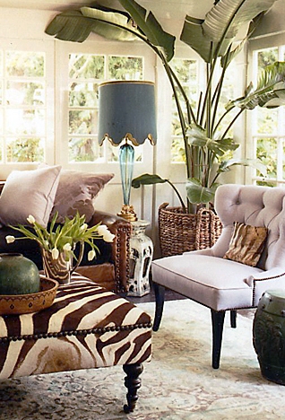 A tablescape from the famous pink living room (above), and a perfect masculine -meets-tropical style below. I love them all!