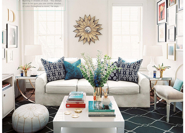 Today is the last day before the Easter break so in between picking up cushions and ordering furniture I am busy helping my boys make chocolate eggs - it’s a messy business! I know I should be thinking warm and cosy rooms going into winter but fresh and summery decor is really calling me at the moment - I love this blue and white room, the pop of colour against the white and the symmetrical lamps and picture walls. This is a great arrangement for a small house with one room that has to look beautiful when you walk in (the symmetry under the windows) but also double as a tv zone (I’m picturing the tv on the nailhead-trimmed cabinet to the left - which I also love!).