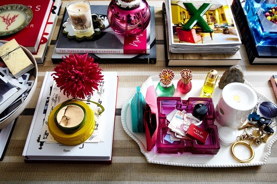 I took delivery of a stack of lovely new books today. Oh how I love getting new decorating/design books- it is an addiction for me! Among them was ‘Domestic Bliss’ by Rita Konig - it came out years ago but after seeing the top pic (which was credited to the book) on a blog I decided I must get it. Only..there are no pics in the book! It still looks like a great read and I love the red and pink hardcover, but if you know the source of the top image please do let me know, and I’ll rush out and buy that too. I’ve been searching in vain for years for a stylish ashtray (oh no, not for smoking) like Rita’s signature pink one!