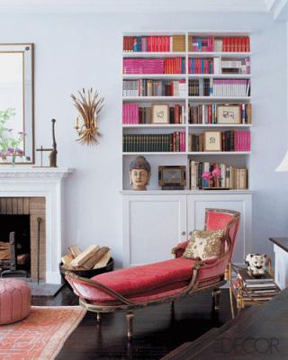 Recognise this room? It’s Candace Bushnell’s house in ‘So Chic’, and it was possibly my favourite pic in the book. I love the ice blue walls as a backdrop for all the pink - pink leather pouffe, coral pink rug, the pink spines of (I’m guessing) her books. And of course, who wouldn’t love that gilded pink velvet chaise? Absolutely gorgeous!