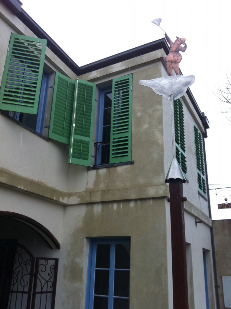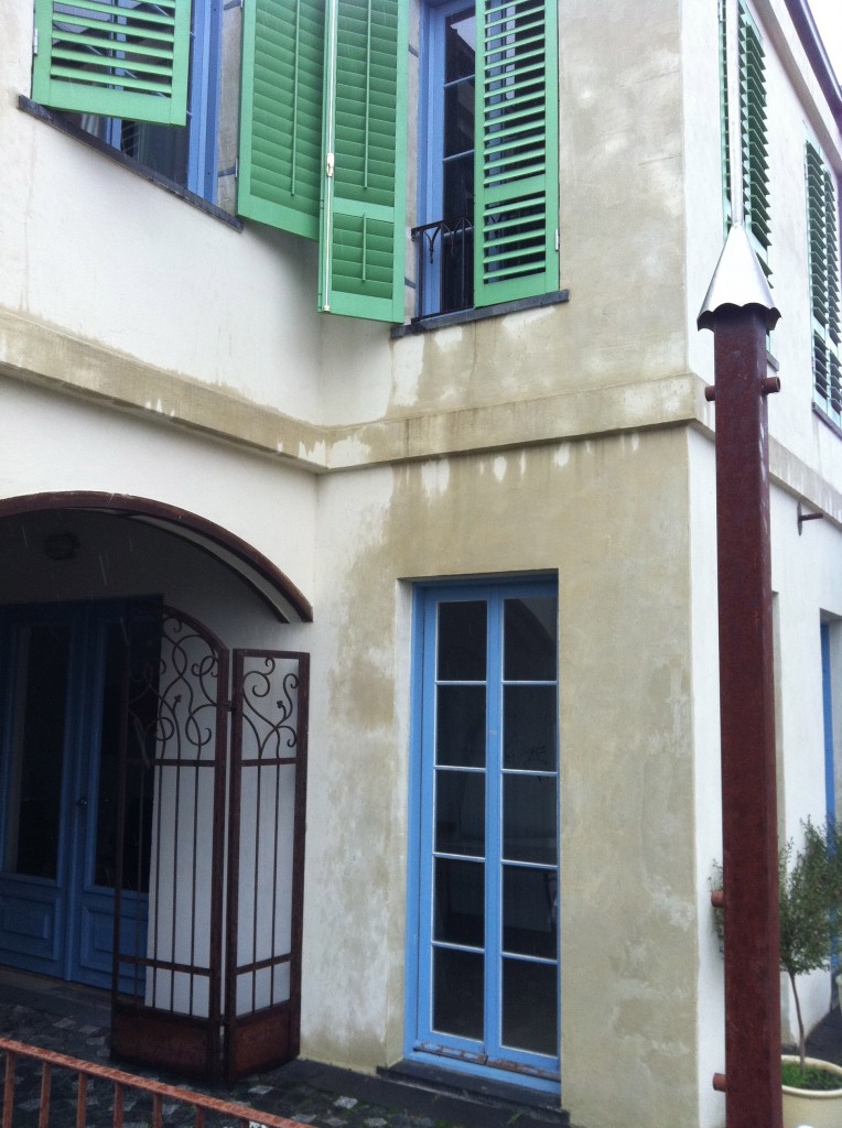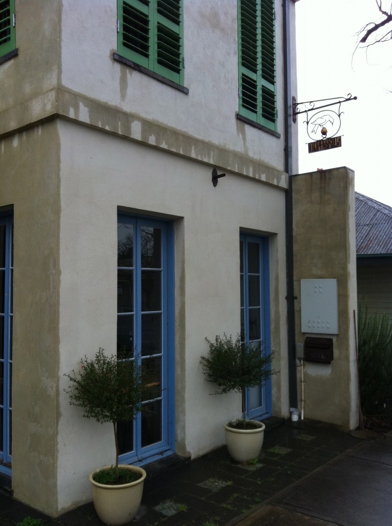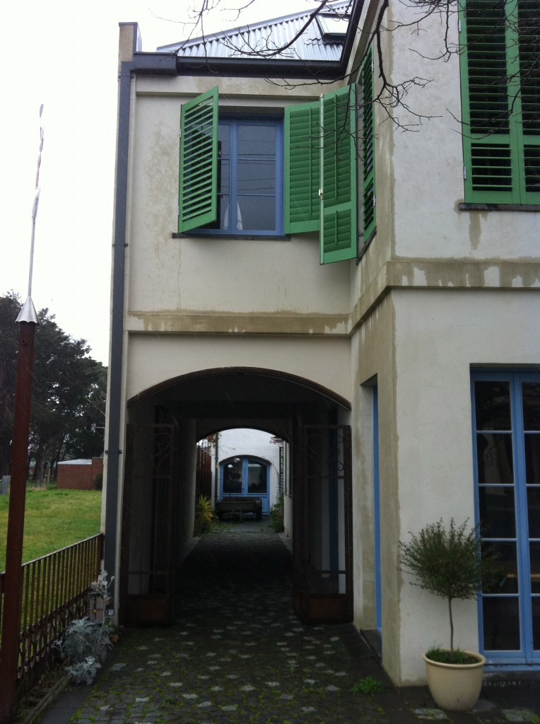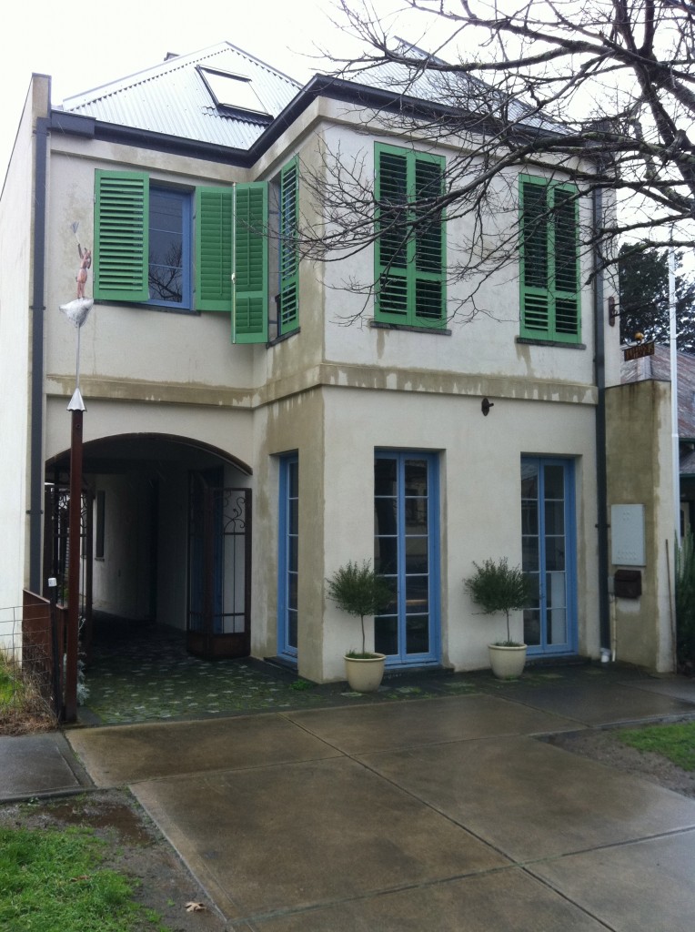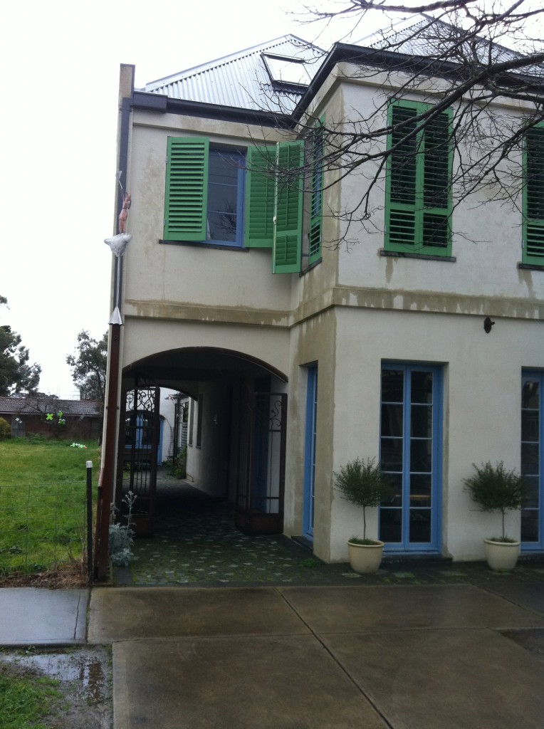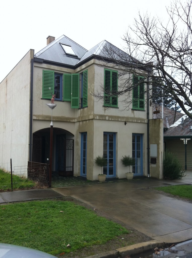 Anyway, yesterday we were driving out of a little town a couple of hours outside Melbourne when I saw this gorgeous little house on the side of the road, and I had to stop to take a closer look (and some pictures). I’m always looking for interesting ideas for building on a small block, and this one was a beauty: only 6m wide, the house took up the full width of the block and was only set back from the footpath by about one metre. Yet it had all the charm of a French Provincial chateau, complete with French doors, shutters, archways and wrought iron gates and balcony railings. I loved the driveway going up the side with a studio/guest room (I’m imagining here) up the back, and with the house extending over the top. Just when I think I have my heart set on buying/building a modern house next, I see a building like this and fall in love with this style all over again!