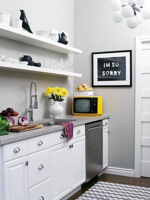 A yellow and grey living room