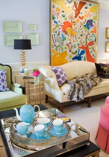 This is such a fun, happy room and I love the big, bright animal painting for a family room!