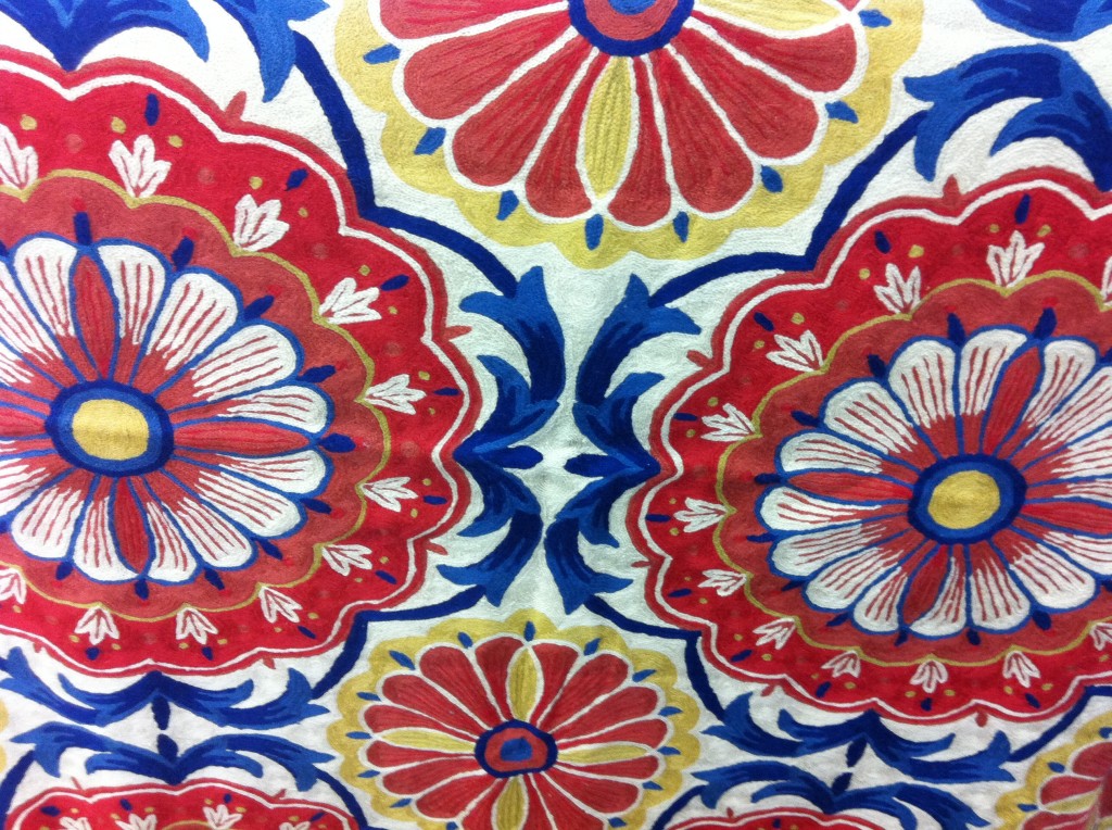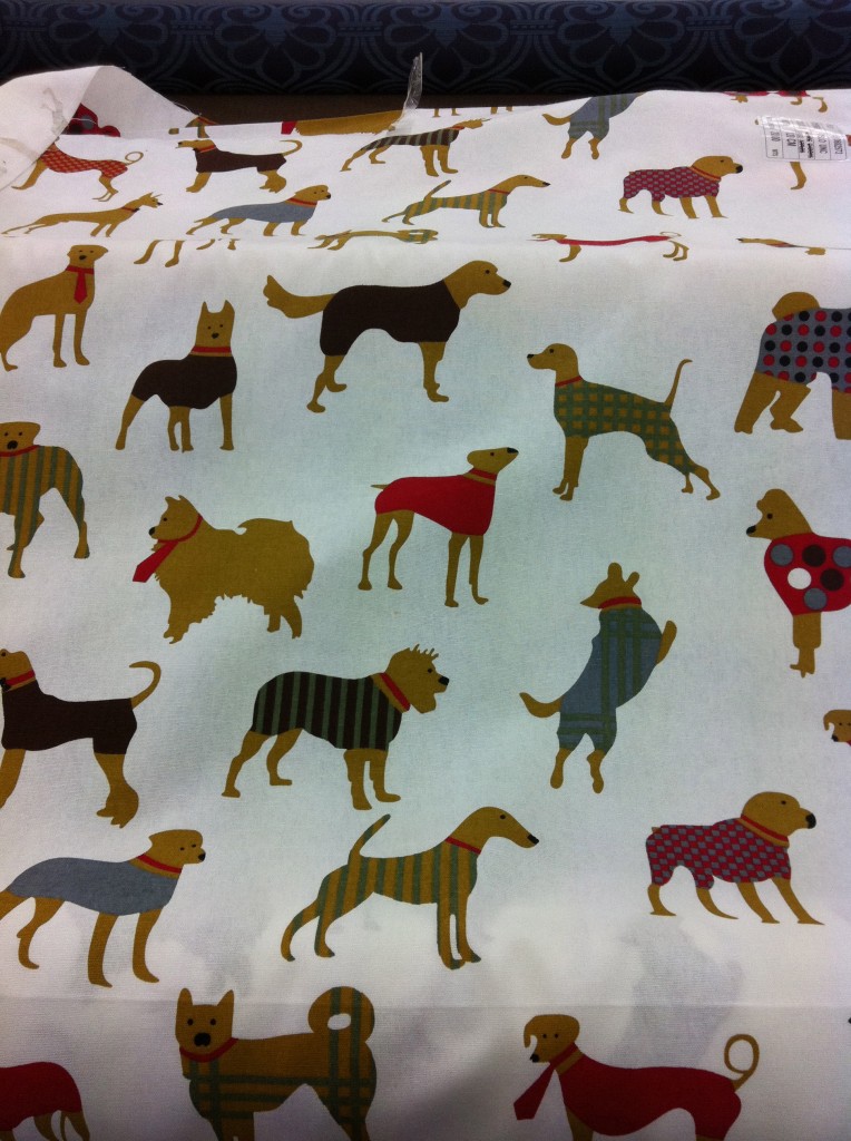 They also have this cute doggy fabric. I was (still am) trying to think of something I could do with it. My first thought was how great it would look in a set of whimsical curtains across the back door (still thinking of handy mudrooms from yesterday’s post) of a country house- perhaps with some red trim to make it pop. Or maybe to cover a statement armchair.