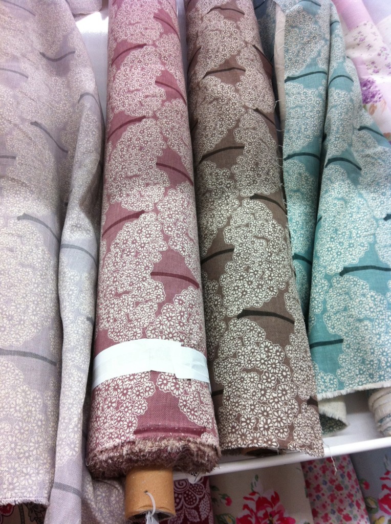 This linen printed with trees also caught my eye - love the subtle muted colour options, particularly the pale grey/mauve.