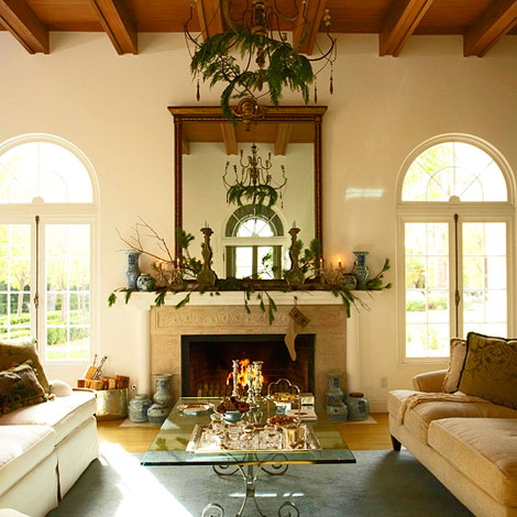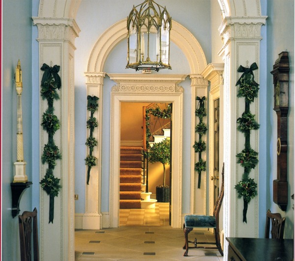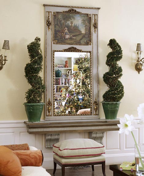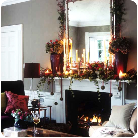 My favourite two magazines for Christmas spreads are Homes & Gardens (UK) and Traditional Home (did I mention this before?). This room (above) was in Homes & Gardens a few years ago (though I think this picture may be from House & Home) and I wish I had pictures of the rest of it! It had that moth-grey colour on the walls, lots of jewel colours and raspberry in the decorating mixed with greenery, and I remember coming back to it again and again that year!