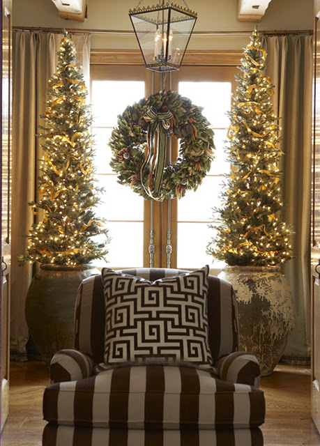 Well today is the first day of that month, and Christmas wreaths are going up on front doors (including ours) all around our neighbourhood. I have to say, it’s not just my kids who get excited about the decorations everyone puts up in and outside their houses! I love everything about Christmas; the traditional hymns, going to church and visiting the Nativity display, time with family, the cooking, shopping for and giving presents, the carols, and of course, the decorating! This year I am really into a cosy, traditional look. I haven’t actually done this at home but I have this fantasy Christmas room in my head that to be would be perfect this year. It has warm brown/grey walls (I think of the colour as milk chocolate), big comfy armchairs, maybe French in style with some dark timber frames, upholstered in white and scattered in subtly patterned velvet cushions in reds and golds. The tree in my fantasy room is huge, twinkling with lots of lights, and filling the room with that wonderful real tree smell. Shining silver trays laden with mercury glass tealights, crystal goblets and bowls of treats sit atop gleaming antique tables and squashy ottomans. Get the picture? Very cosy and enveloping, very traditional.