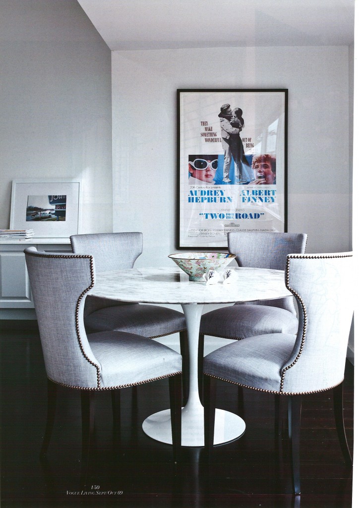 Though he’s obviously not shy of colour, Darryl’s work has a classic edge to it which really appeals to me. I absolutely love the grey/blue chairs with nailhead trim paired with the classic Saarinen table: