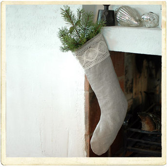 But I have a question, are stockings for the whole family or just for the kids? Since I’m the only one in the family who fills them I’d feel ridiculous having one for myself! My eldest son loves the idea of five neat stockings hanging from the fireplace mantel - he obviously saw this on a movie somewhere - and from a purely decorative point of view, this would look great if they were nice linen ones! I love the simple linen stocking above from Red Door Home on etsy(US$40).