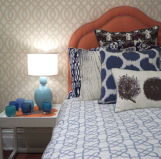 I had to pop into Spotlight this morning to pick up some bits and pieces for client room installations next week, but actually saw a few bargain treasures that I wouldn’t mind for myself (as often happens, I must admit). If you have the patience to sift through lots of ugly vases, artificial (and artificial looking) flowers, floral bedspreads and acrylic rugs you can occasionally find something great (and cheap). Case in point, the blue and white trellis and geometric cushions (above). I was very tempted to buy some of these (especially the top one), and I think they were only around $30.